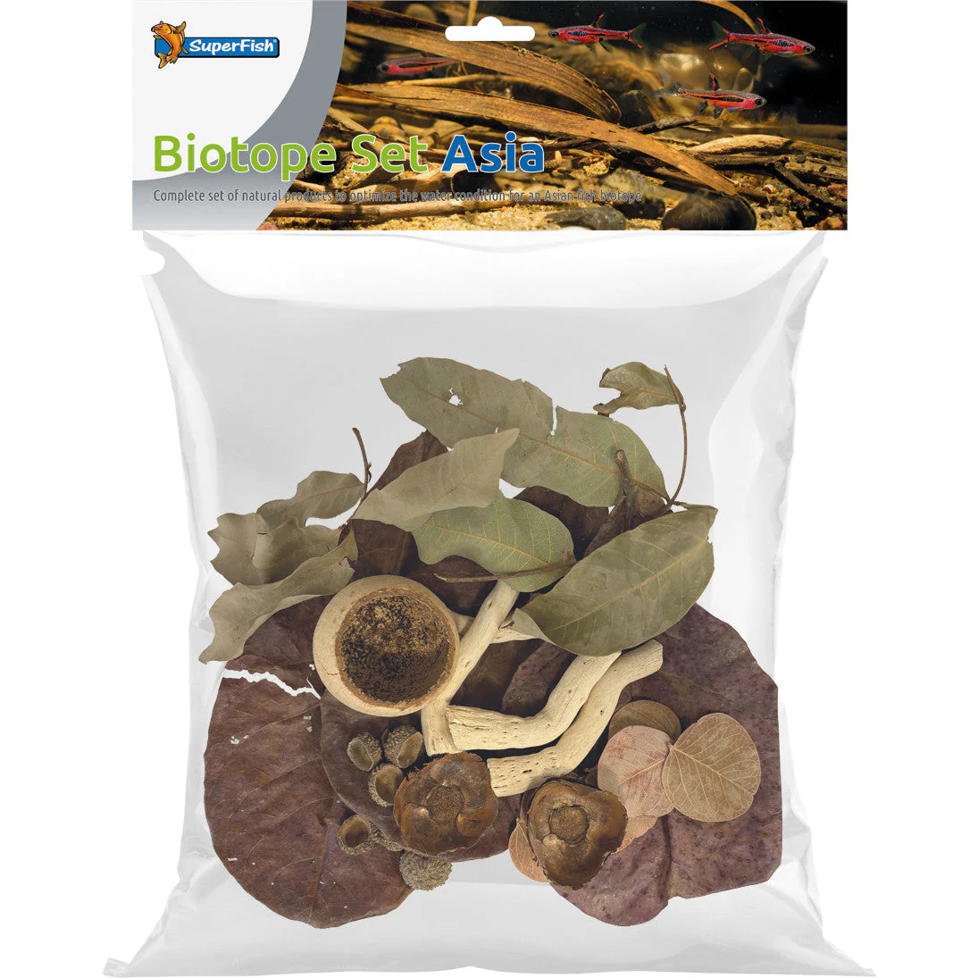 These sets contain a collection of botanicals (leaves, pots, seeds, sticks). They add to the natural appearance of your aquarim and have additional benefits.