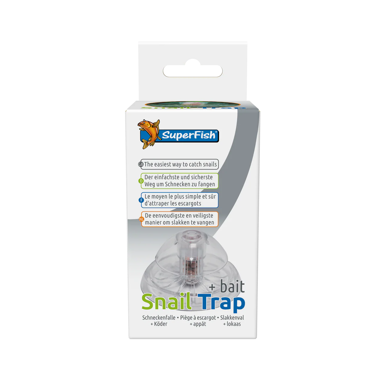 The Superfish Snail Trap provides a simple and safe solution to removing snails from your aquarium. With its bait and trap design, snails are easily lured and removed without the use of harmful chemicals. Perfect for keeping sensitive fish and plants safe. Measures 6cm in diameter and includes a tub of snail bait.